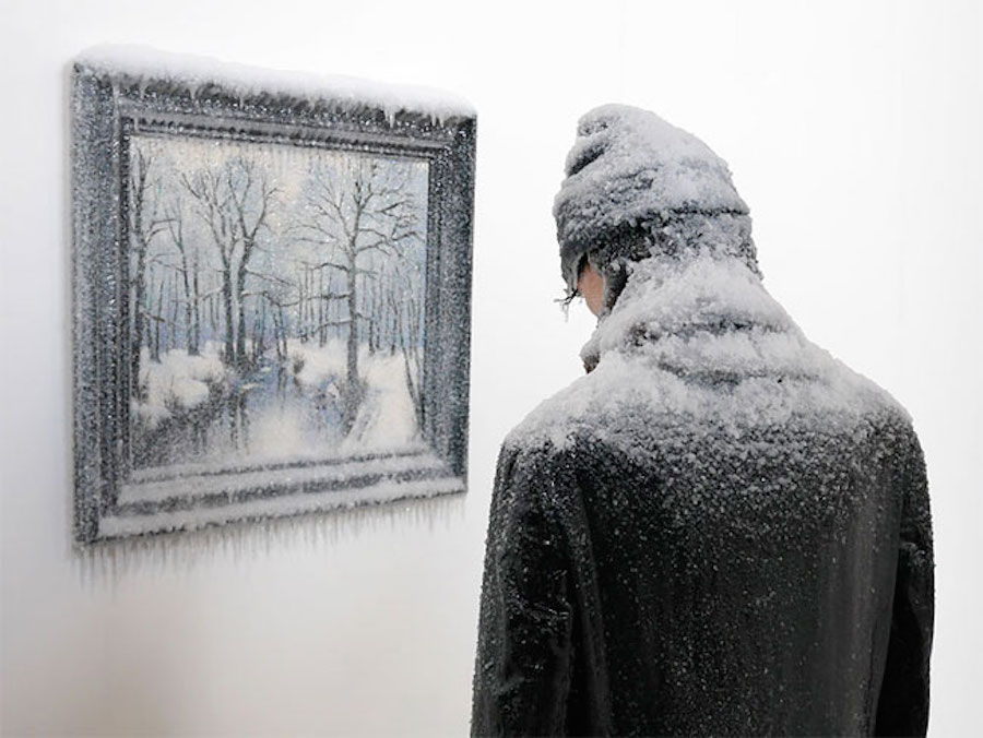 In questa opera surreale, l'artista mescola l'immaginario con la realtà, gelo e neve non sono solo contenute nel dipinto, ma diffuse nella realtà. Tutto, dalla cornice, alla tela, alla replica dell'artista è congelato.